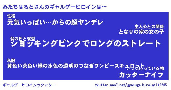 | 女子向けラノベタイトル風あだ名 | 『(仮)みたちはるとのやんごとなき事情』 |