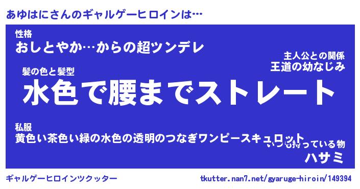 | 女子向けラノベタイトル風あだ名 | 『(仮)あゆはにのやんごとなき事情』 |