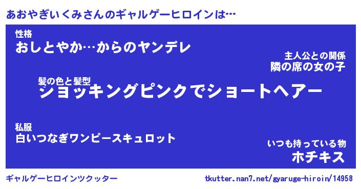| 女子向けラノベタイトル風あだ名 | 『(仮)あおやぎいくみのやんごとなき事情』 |