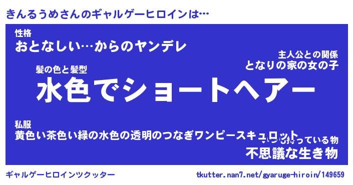 男性向けラノベタイトル風あだ名 | 『きんるうめの憂鬱』 |