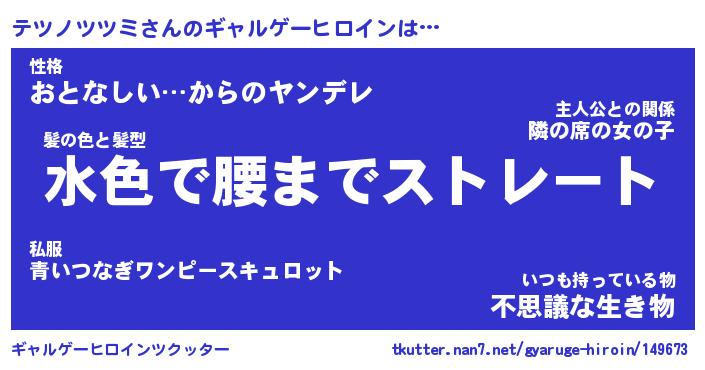 | 女子向けラノベタイトル風あだ名 | 『(仮)テツノツツミのやんごとなき事情』 |