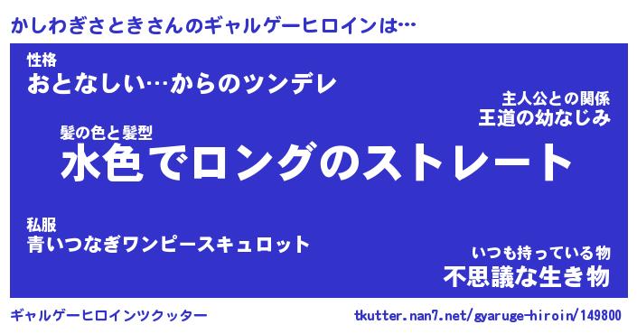 | 女子向けラノベタイトル風あだ名 | 『(仮)かしわぎさときのやんごとなき事情』 |
