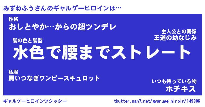 | ファンタジー風あだ名 | 『ミズフェル』『エターナルミズネフウー』 |