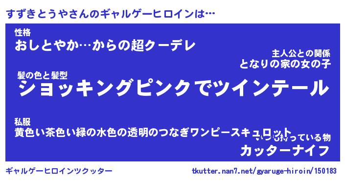 | 女子向けラノベタイトル風あだ名 | 『(仮)すずきとうやのやんごとなき事情』 |
