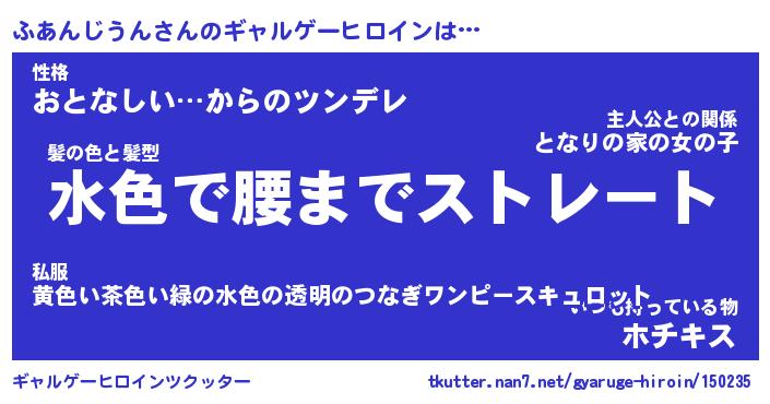 | 女子向けラノベタイトル風あだ名 | 『(仮)ふあんじうんのやんごとなき事情』 |