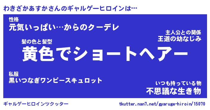 | 伝説のあだ名 | 『封印されし竜騎士わきざかあすか』 |