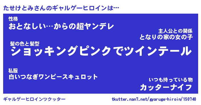 | ヘコむあだ名 | 『たせにー』『なまこ酢』『たせっ子』 |
