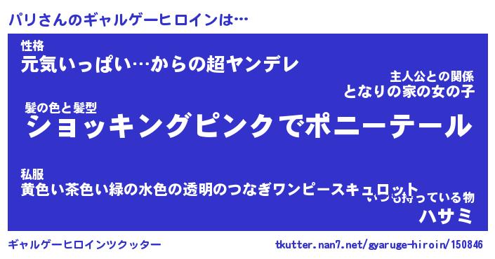 | 女子向けラノベタイトル風あだ名 | 『(仮)パリのやんごとなき事情』 |