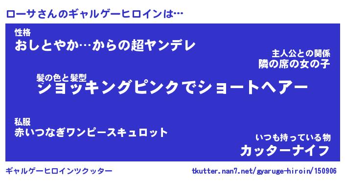 | 女子向けラノベタイトル風あだ名 | 『(仮)ローサのやんごとなき事情』 |