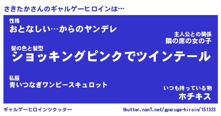 | 男性向けラノベタイトル風あだ名 | 『さきたかの憂鬱』 |