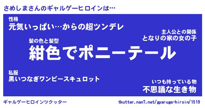 | 意味不明あだ名 | 『ペロリンさめしま』『永久保存さめしま』 |