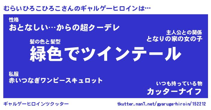 | 男性向けラノベタイトル風あだ名 | 『ムライヒロコヒロコアートオンライン』 |