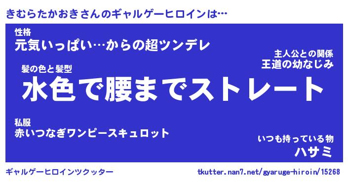 | 女子向けラノベタイトル風あだ名 | 『(仮)きむらたかおきのやんごとなき事情』 |