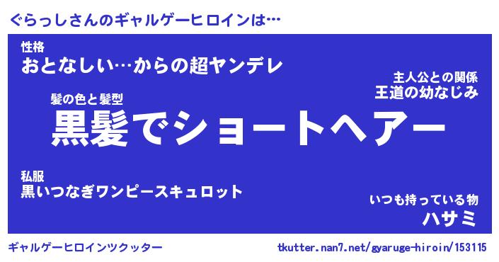 | 女子向けラノベタイトル風あだ名 | 『(仮)ぐらっしのやんごとなき事情』 |