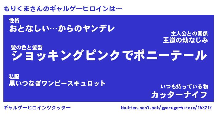 | 男性向けラノベタイトル風あだ名 | 『もりくまの憂鬱』 |
