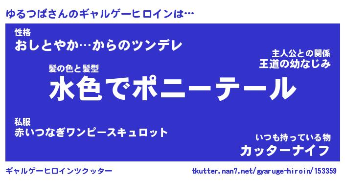 | 女子向けラノベタイトル風あだ名 | 『(仮)ゆるつばのやんごとなき事情』 |