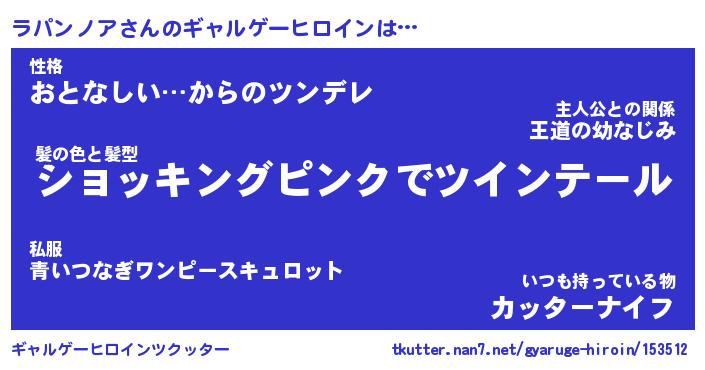 | 男性向けラノベタイトル風あだ名 | 『ラパンノアの憂鬱』 |