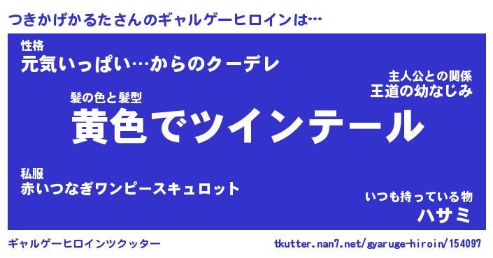 | 男性向けラノベタイトル風あだ名 | 『ツキカゲカルタアートオンライン』 |