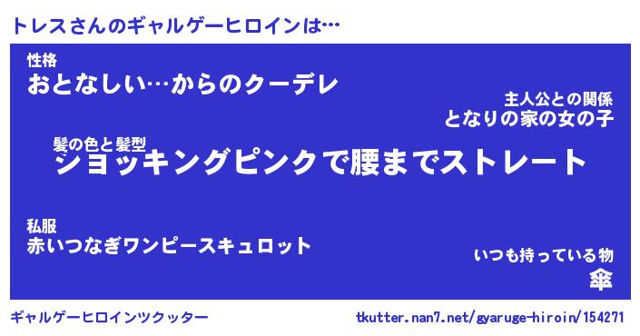 | 女子向けラノベタイトル風あだ名 | 『(仮)トレスのやんごとなき事情』 |