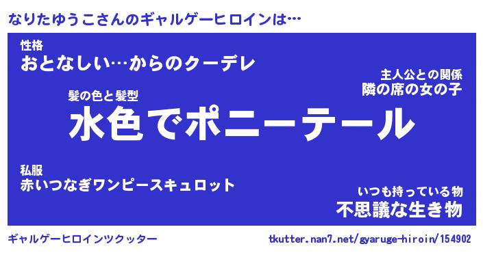 | 女子向けラノベタイトル風あだ名 | 『(仮)なりたゆうこのやんごとなき事情』 |