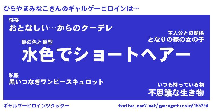 女子向けラノベタイトル風あだ名 | 『(仮)ひらやまみなこのやんごとなき事情』 |