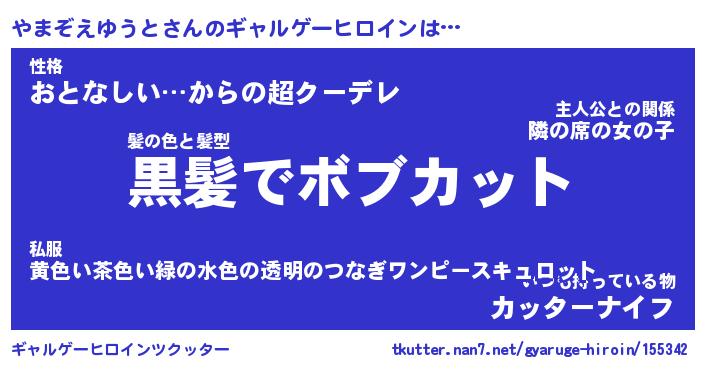 | 男性向けラノベタイトル風あだ名 | 『やまぞえゆうとの憂鬱』 |