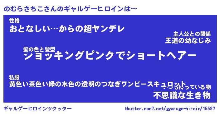 | 女子向けラノベタイトル風あだ名 | 『(仮)のむらさちこのやんごとなき事情』 |