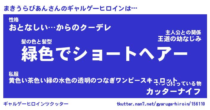 | 男性向けラノベタイトル風あだ名 | 『マキウラビアンアートオンライン』 |