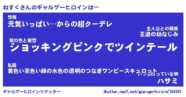 | 女子向けラノベタイトル風あだ名 | 『(仮)ねすくのやんごとなき事情』 |