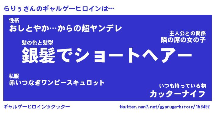 | 女子向けラノベタイトル風あだ名 | 『らりぅ姫と円卓の騎士』 |