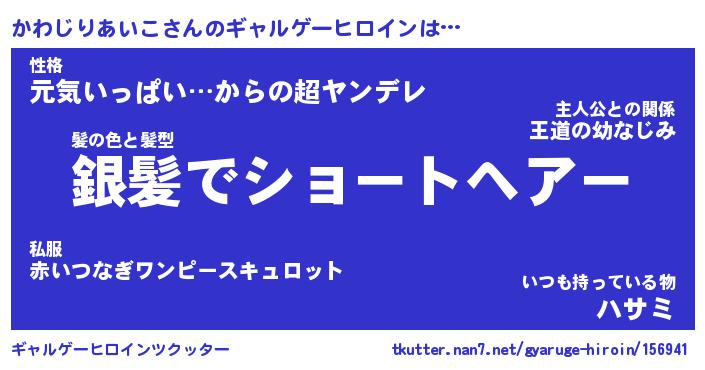 | ヒーロー風カッコイイあだ名 | 『スーパーカワジリアイコ』 |