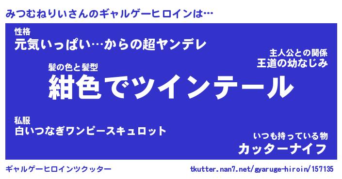 | ヒーロー風カッコイイあだ名 | 『スーパーミツムネリイ』『幻影騎士ミツ』 |