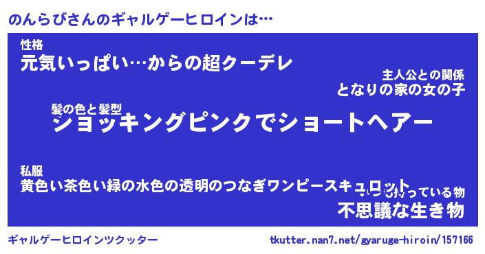 | 意味不明あだ名 | 『ペロリンのんらび』『永久保存のんらび』 |