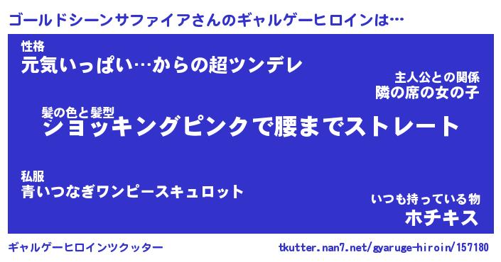 | 胡散臭い通販商品みたいなあだ名 | 『必ず成功するブレスレット…その名も「ゴールドシーンサファイア」』 |