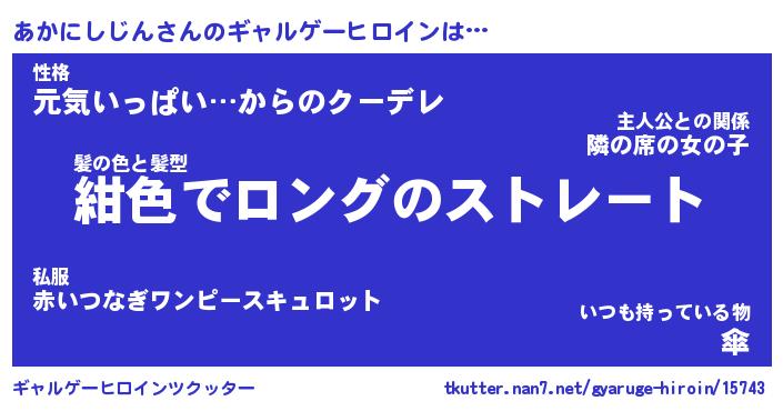 | 男性向けラノベタイトル風あだ名 | 『アカニシジンアートオンライン』 |