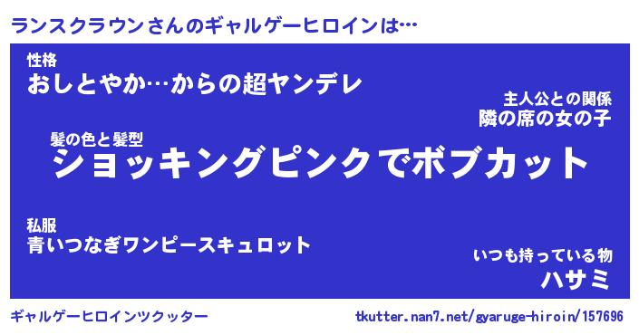 | 女子向けラノベタイトル風あだ名 | 『(仮)ランスクラウンのやんごとなき事情』 |