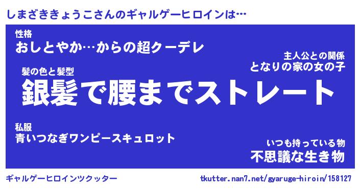 | 男性向けラノベタイトル風あだ名 | 『しまざききょうこの憂鬱』 |