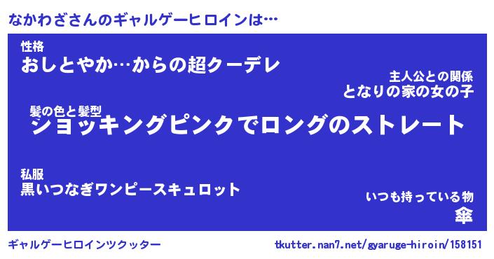 | 男性向けラノベタイトル風あだ名 | 『なかわざの憂鬱』 |