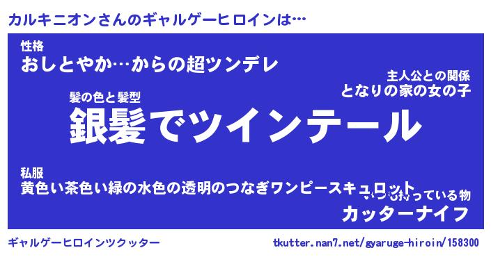 | 男性向けラノベタイトル風あだ名 | 『カルキニオンの憂鬱』 |