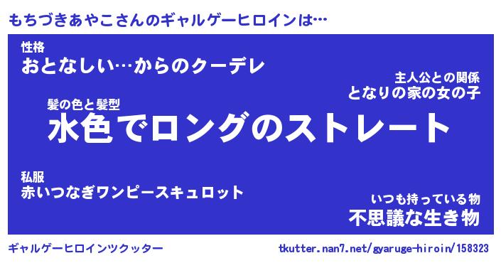 | 男性向けラノベタイトル風あだ名 | 『もちづきあやこの憂鬱』 |