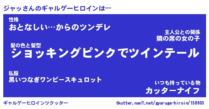 | 女子向けラノベタイトル風あだ名 | 『(仮)ジャッのやんごとなき事情』 |