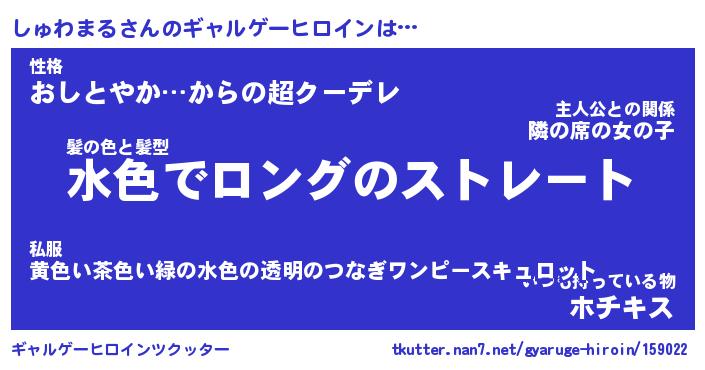 | ファンタジー風あだ名 | 『シュフェル』『エターナルシュワマルー』 |