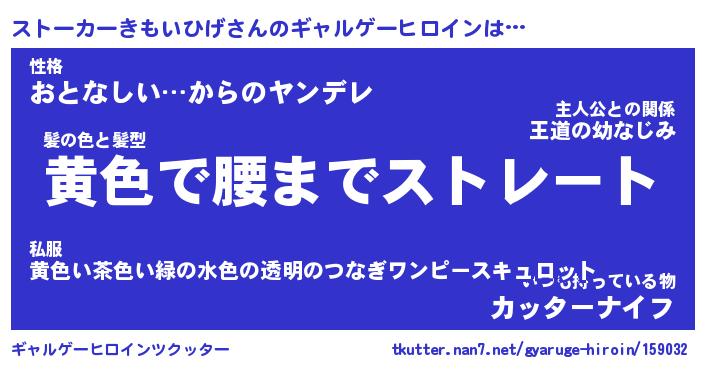 | 男性向けラノベタイトル風あだ名 | 『ストーカーキモイヒゲアートオンライン』 |