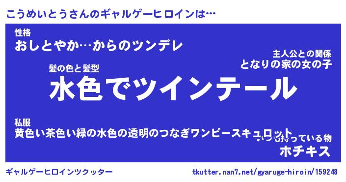 | 女子向けラノベタイトル風あだ名 | 『(仮)こうめいとうのやんごとなき事情』 |