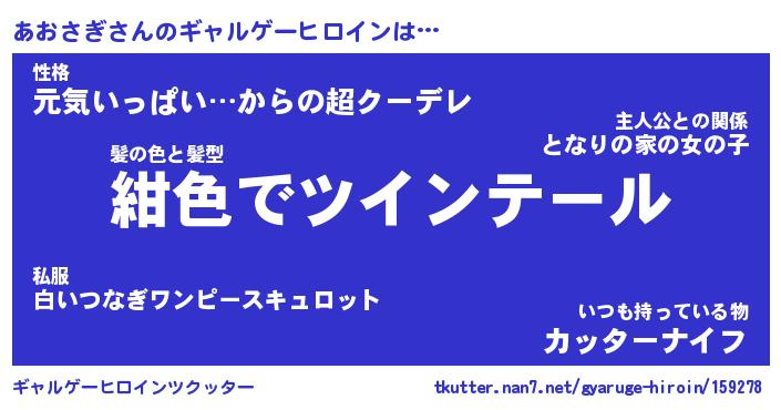 | ファンタジー風あだ名 | 『アオフェル』『エターナルアオサギー』 |