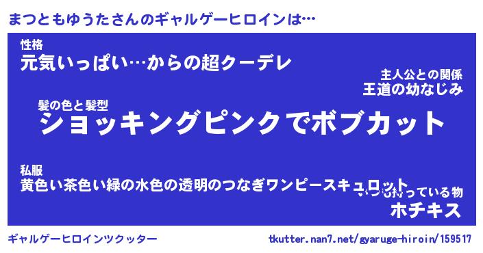 | ポケモン風あだ名 | 『マツチュウ』『マツトダネ』 |