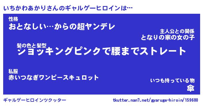 | 男性向けラノベタイトル風あだ名 | 『いちかわあかりの憂鬱』 |