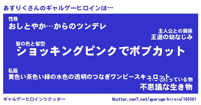 | 女子向けラノベタイトル風あだ名 | 『(仮)あすりくのやんごとなき事情』 |