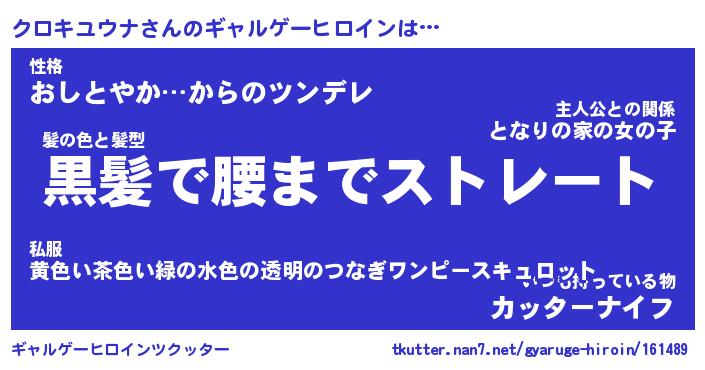 | 男性向けラノベタイトル風あだ名 | 『クロキユウナの憂鬱』 |