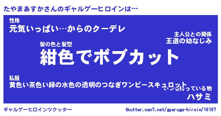 | ヘコむあだ名 | 『たやにー』『なまこ酢』『たやっぺ』 |
